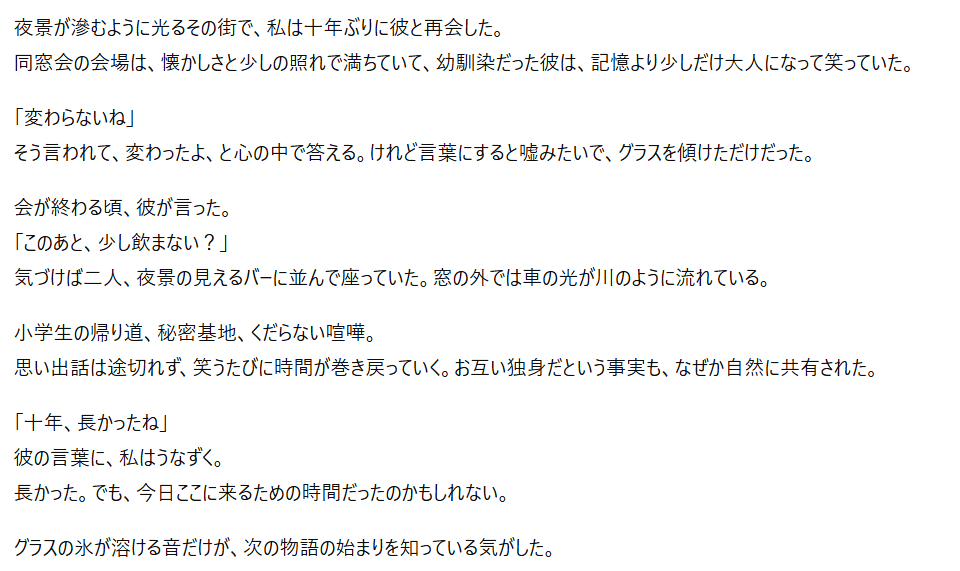 AIはあくまで執筆のサポートツールです。最終的な仕上げはあなた自身の感性で行うことで、より魅力的な作品に仕上がりますよ!