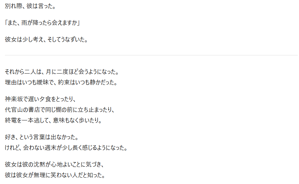 実は、以下のような工夫をすれば、規制の厳しいAIでも官能的な小説を書かせることができるんです。