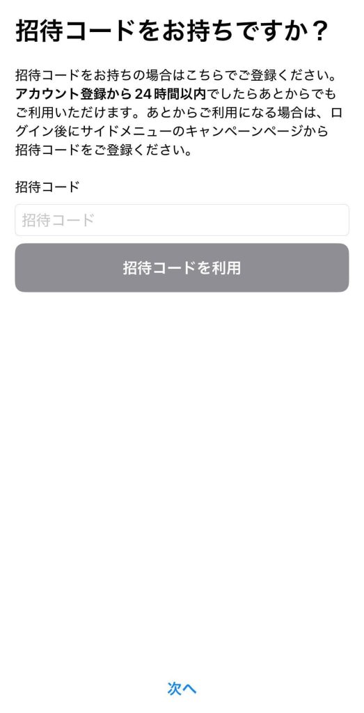 ②招待コードを入力する(任意)