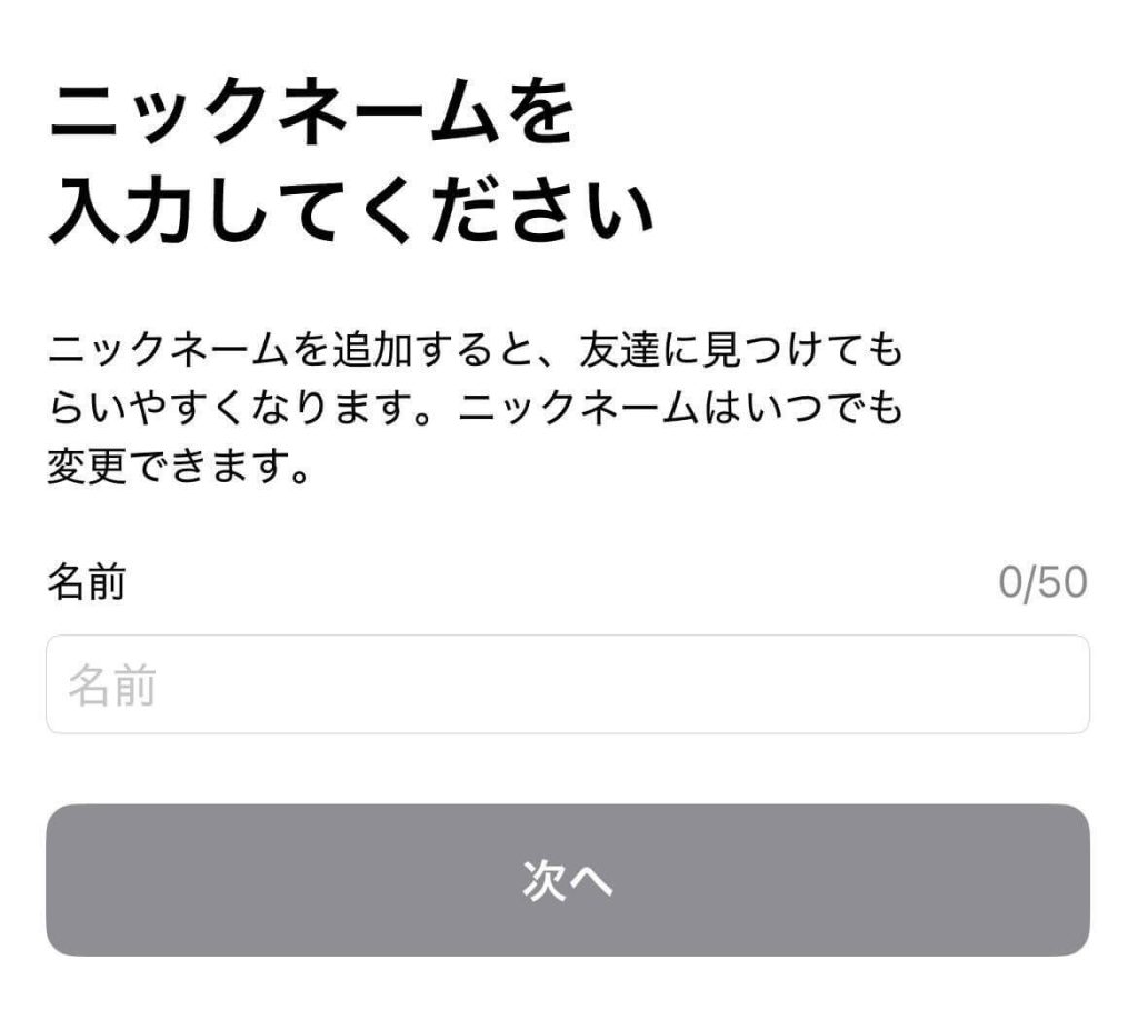 本名や顔写真を設定すると友人にバレる可能性があるので、ニックネームやアイコン画像にしておくのがおすすめですよ!もちろん、あとから変更することもできます。