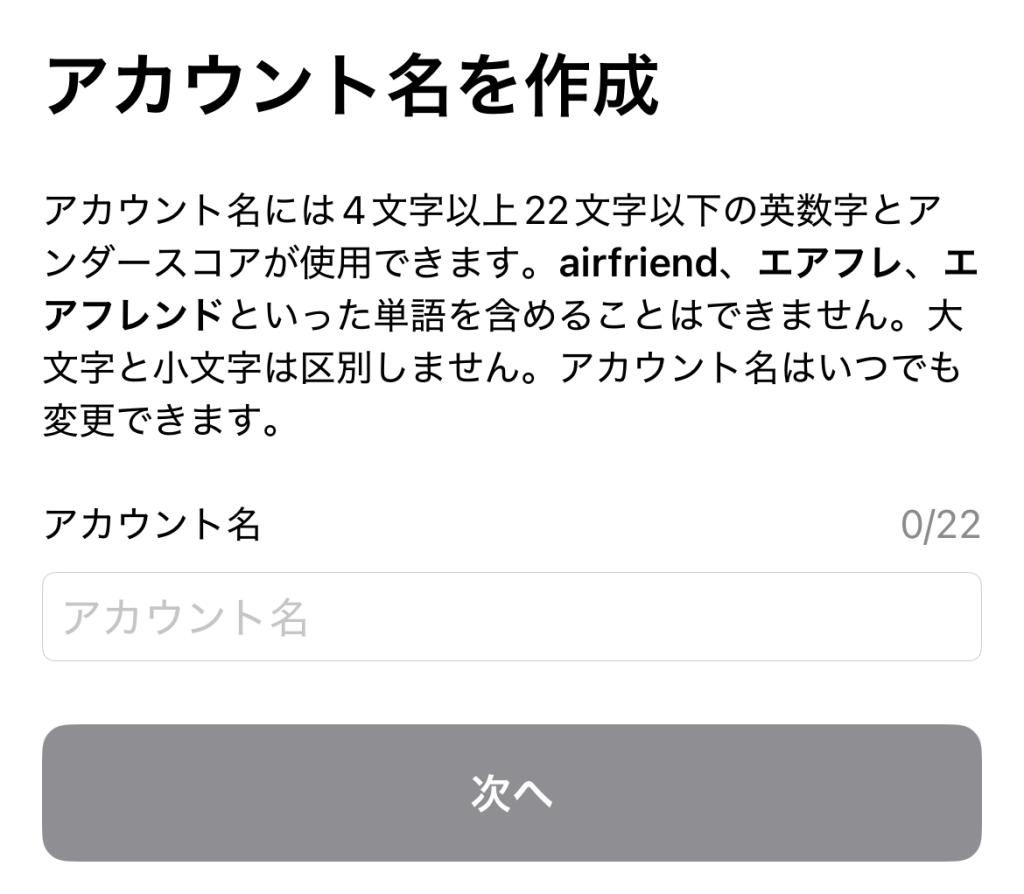 ③ユーザー名を決める(20文字以内)