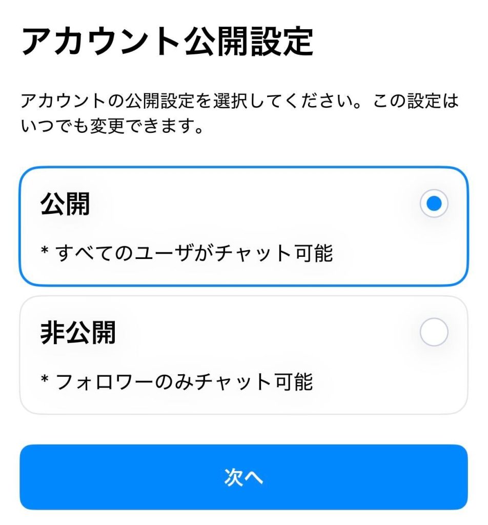 ⑦アカウントの公開設定を選ぶ