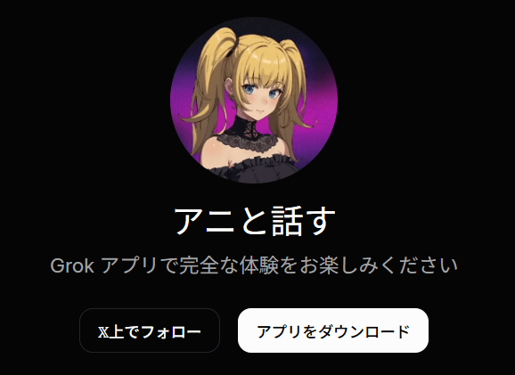Grokにはもう一つ、「Ani(アニ)」という美少女AIコンパニオン機能があります。