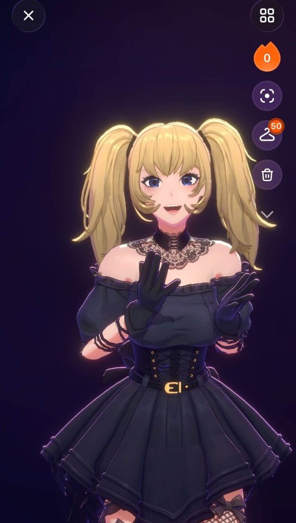 | Ani | ・金髪ツインテール ・ゴスロリ風ドレス(フリルやリボン) ・可愛らしい露出多めのファッション ・22歳設定 |