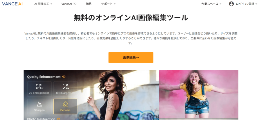 ここでは誰でも無料で試せるVance AIの無料ツールを例に、具体的な手順をご紹介します!