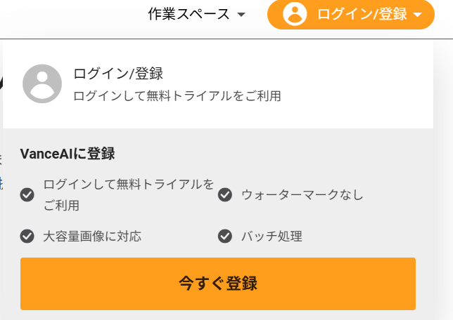 - STEP!VanceAI公式サイトにアクセスし、無料アカウント登録(Google/Facebookアカウントも可)
