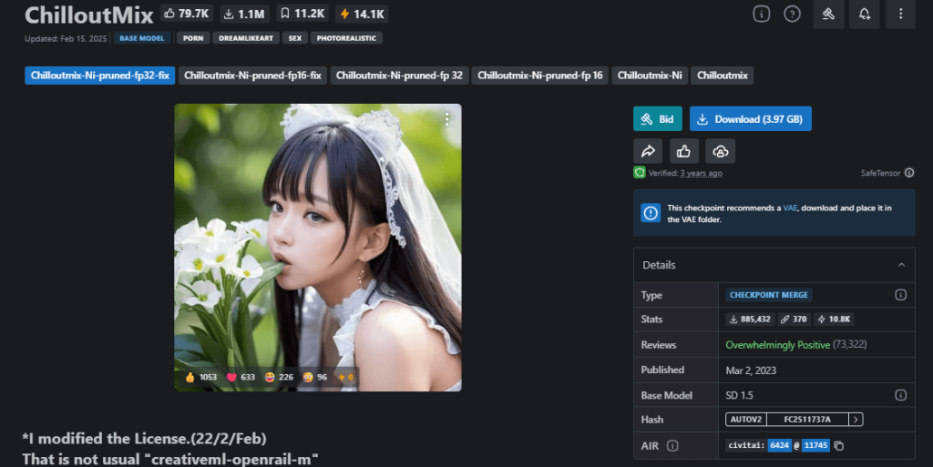おすすめのモデル:『ChilloutMix』
