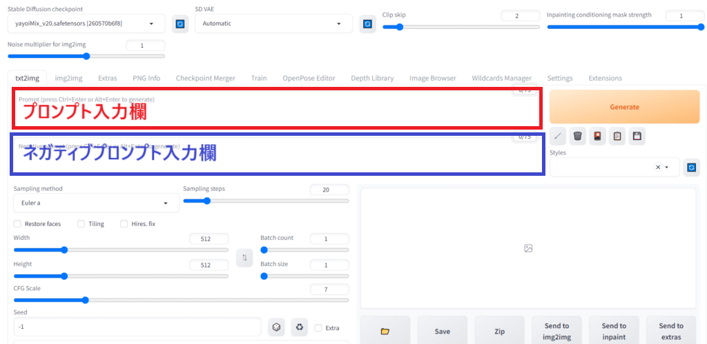 - 英語ベースで適切な単語によるプロンプトとネガティブプロンプトの組み合わせを試行錯誤しながら見つけるのが大切
