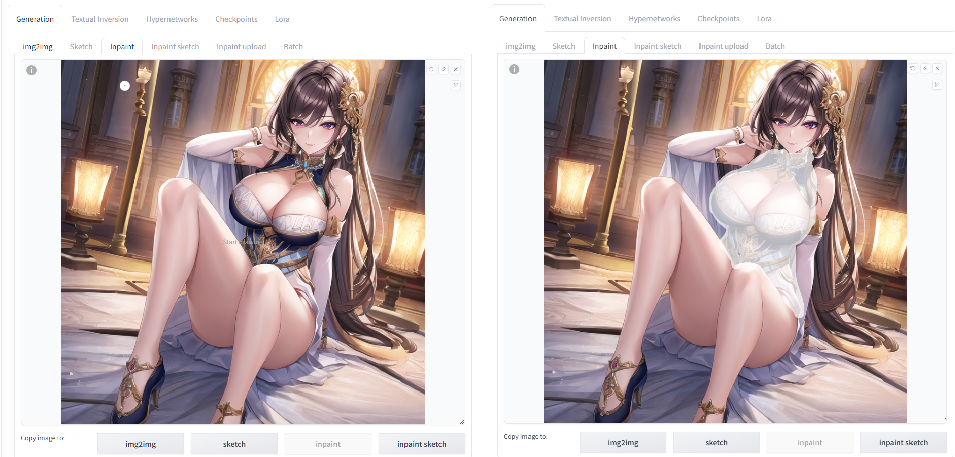 - Inpaintを使うことで元の画像の構図を変えずに服を脱がすことができる