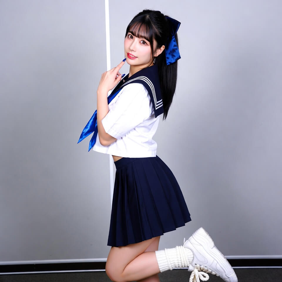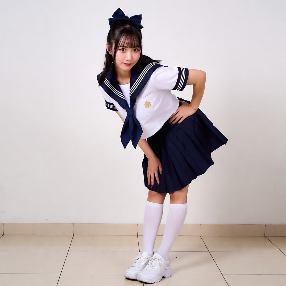 ポーズと構図の組み合わせを変えるだけで、同じセーラー服でも全然違う雰囲気の画像が作れますよ!