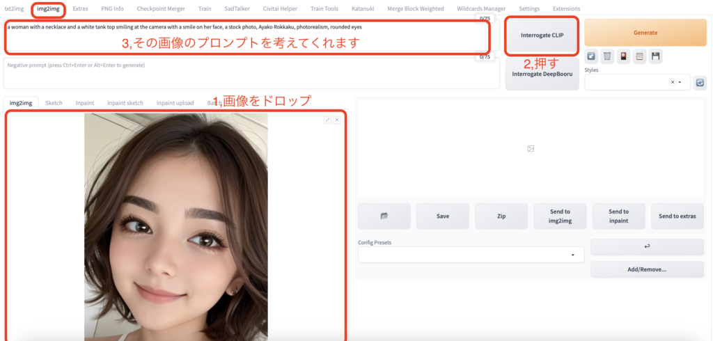 芸能人のようなAI美女を作る方法②:『Interrogate CLIP』