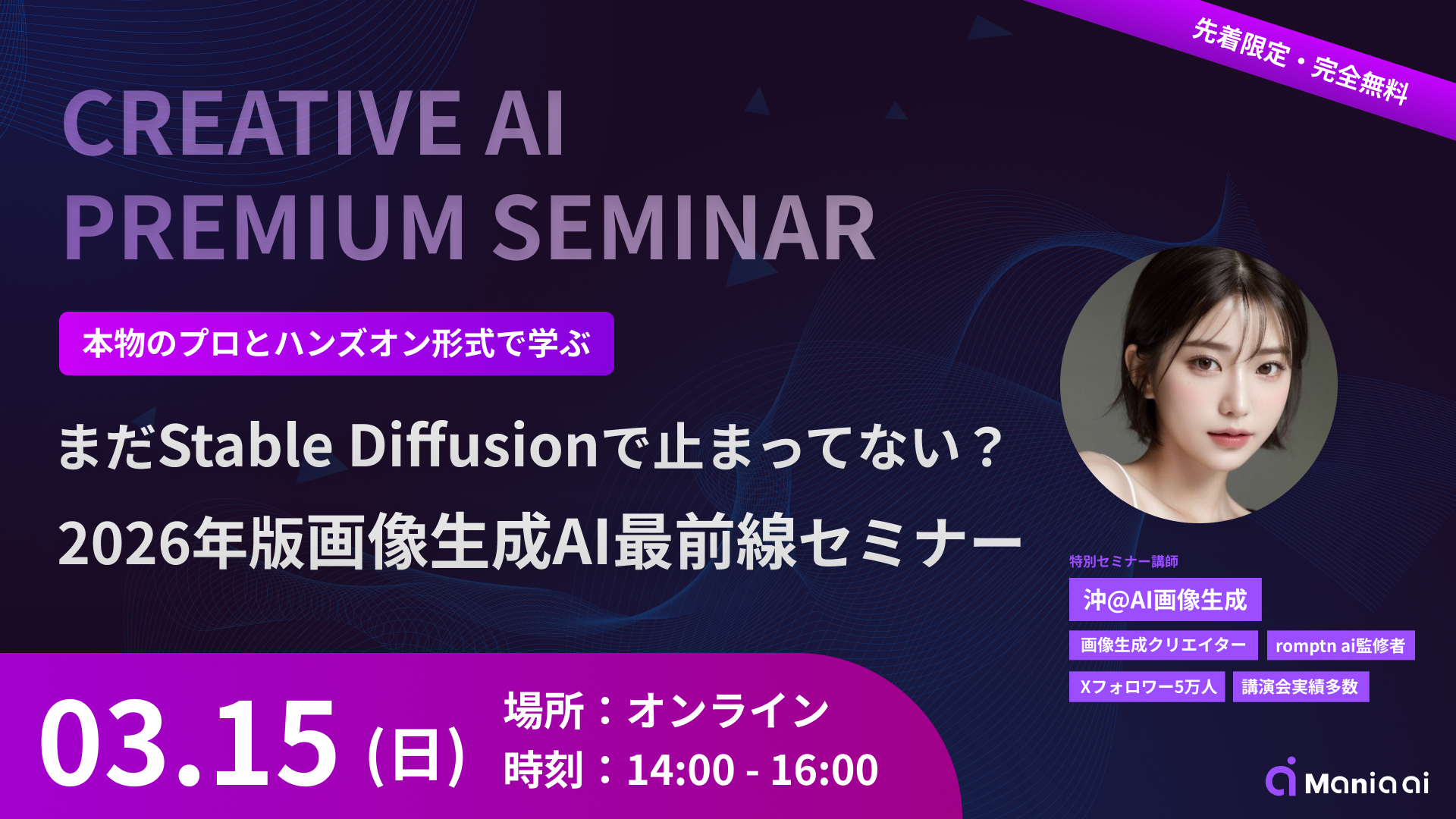 【無料セミナー】2026年のAI画像生成、まだStable Diffusionだけで戦ってませんか?最新勢力図から収益化まで一気に学べる2時間