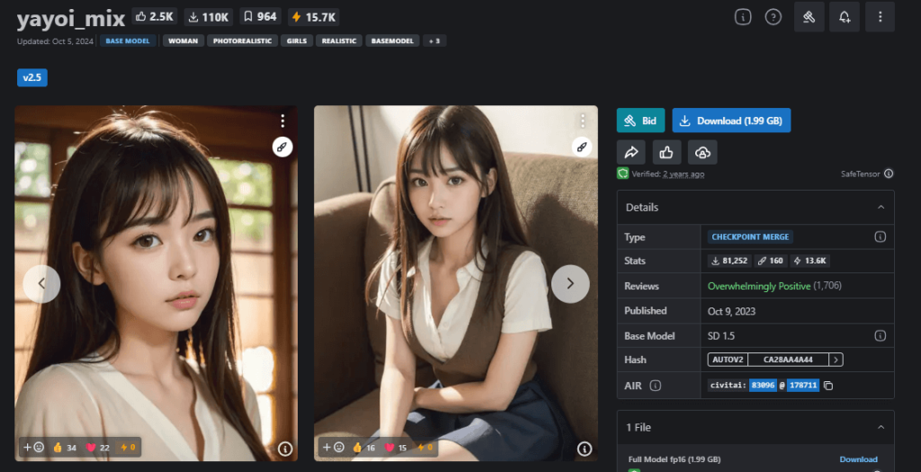 | URL | https://civitai.com/models/83096/yayoimix |