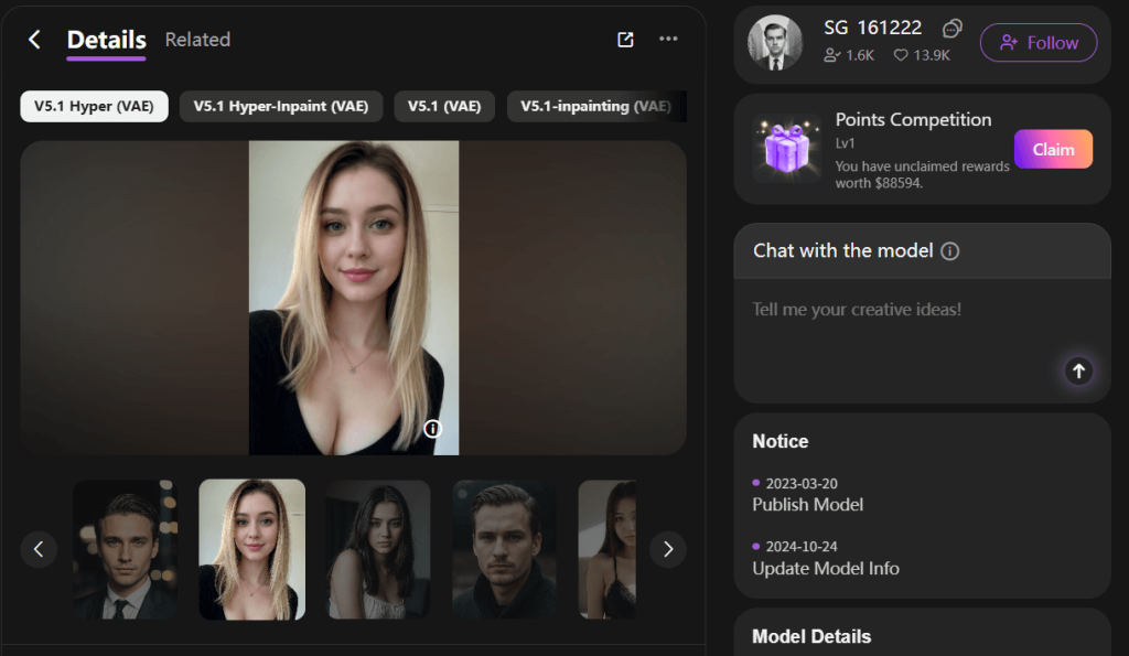 | URL | https://www.seaart.ai/models/detail/41ca971ecd10220eb4a26de3ac1b035c |