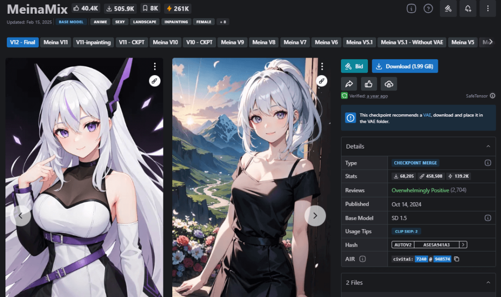| URL | https://civitai.com/models/7240/meinamix |