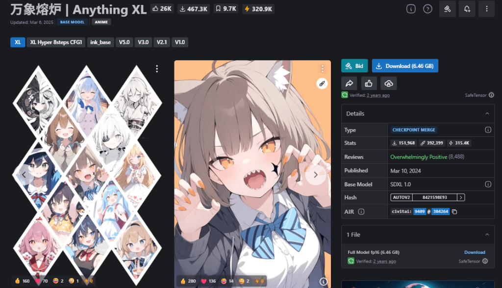 Anything XLは迷ったときの定番モデルですね。安定した品質で生成できます!